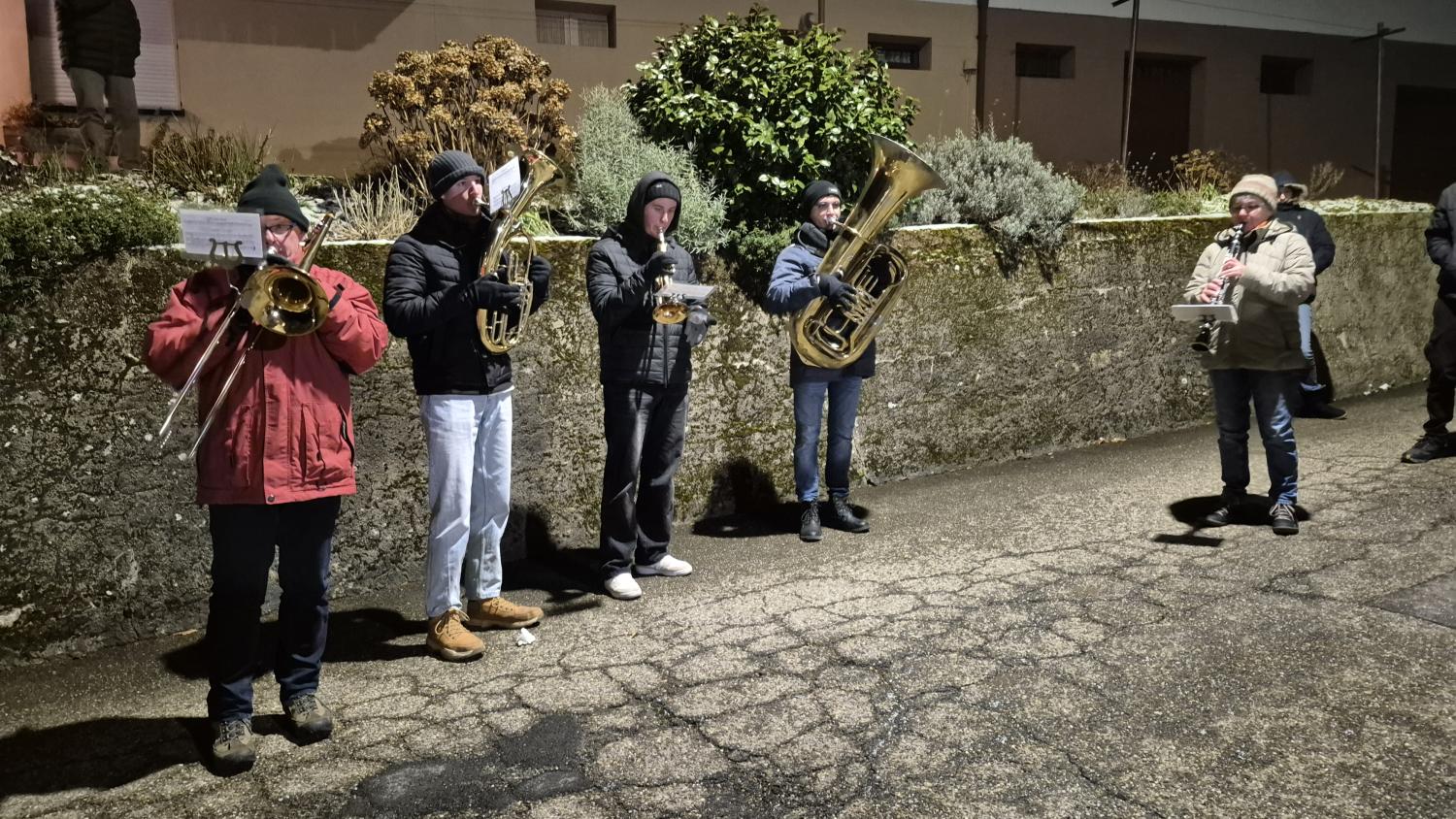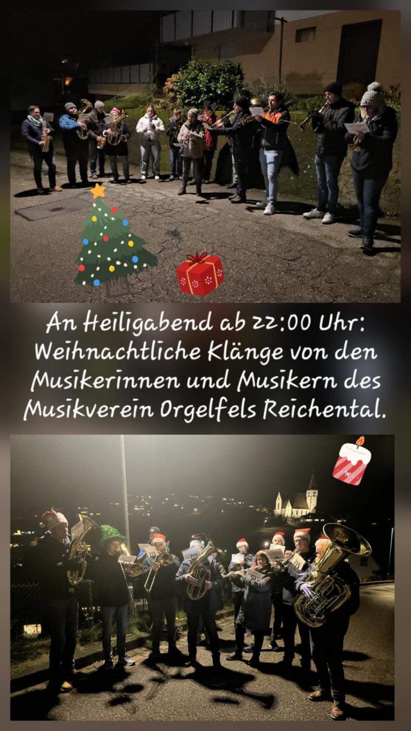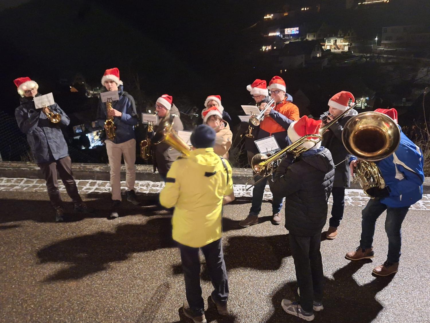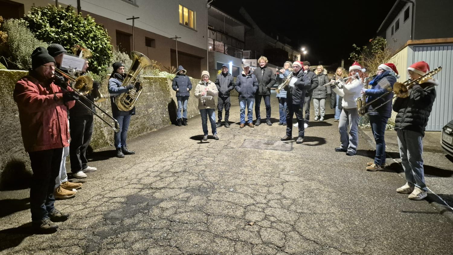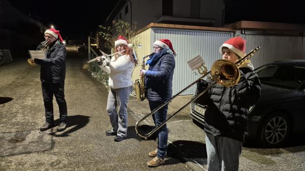 Wie jedes Jahr spielten wir am Heilig Abend in zwei Gruppen an diversen Stationen im Ort.