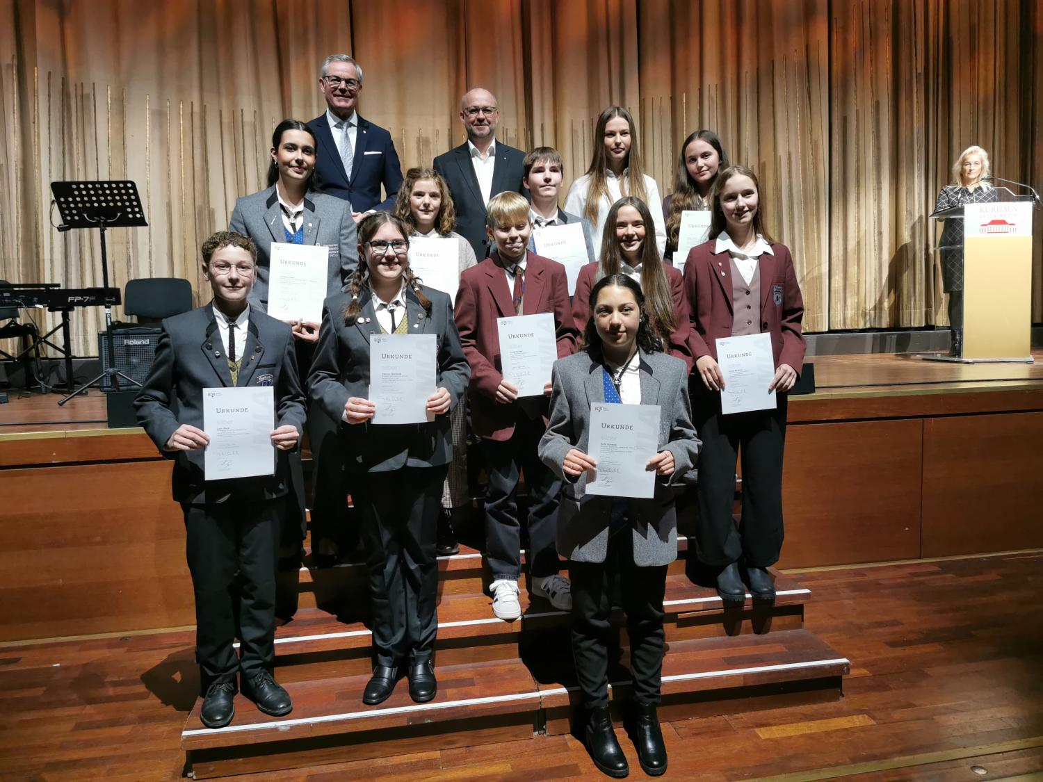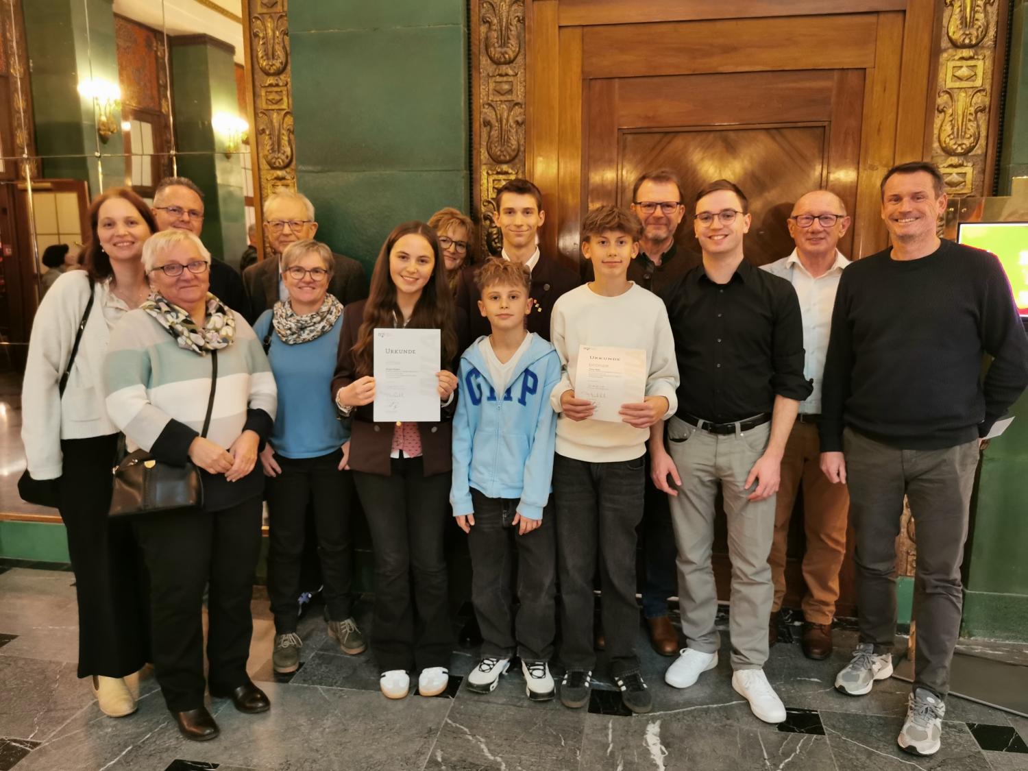Ein schöner Anlass zum Feiern ist jedes Jahr die Verleihung der Jungmusikerleistungsabzeichen im Benazet-Saal des Kurhauses Baden-Baden. Vorstandsmitglieder sowie Familien konnten dabei sein, als drei stolze Jungmusiker ihre Leistungsabzeichen entgegennehmen durften. Das JMLA, welches vom Bund Deutscher Blasmusikverbände vergeben wird, fordert sowohl theoretisches Wissen als auch praktische Fähigkeiten, die die Jungmusiker in ihrer jeweiligen Leistungsstufe überzeugend unter Beweis gestellt haben. Das JMLA in Bronze ist zugleich die Eintrittskarte zur Musikkapelle.